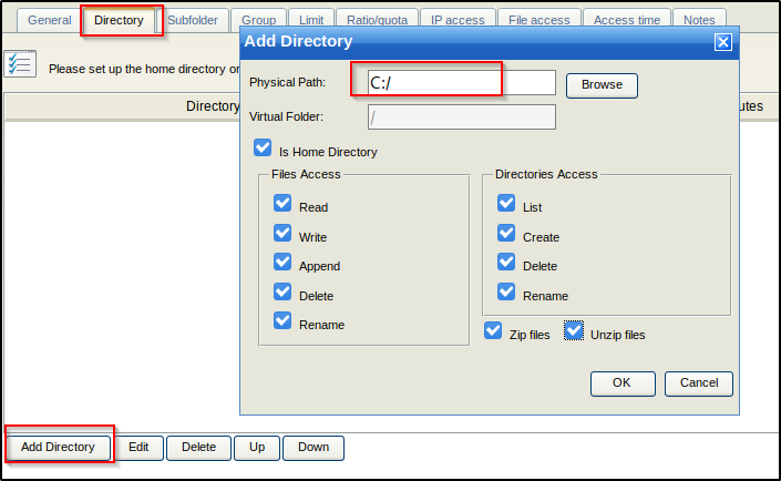 We’ve created a user and granted them complete access to the file system. This is where the unintended exploit was discovered. WingFTP is running as a low privilege user, however by granting the access I did, I discovered that I was permitted to access the ENTIRE file system, to include the Administrator directory, System32 files, etc. This is completely unintended, and after researching for some time I was unable to find anything in the wild that suggests this exploit has been discovered before. I’ll be doing more research on this to determine if it’s simply a misconfiguration (which it shouldn’t be due to user permissions on the underlying machine), or an actual zero day exploit that’s not yet been discovered.
