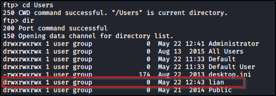 User lian directory where we will place our exploit (notice we have RWX permissions on Administrator)